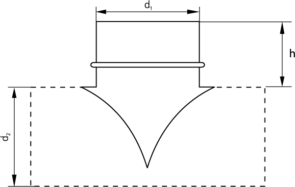 Стандартная высота врезки 100 мм, диаметр врезки (d1) при оформлении заказа указывается первым и не может быть больше диаметра воздуховода (d2), который указывается вторым.